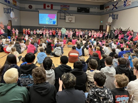 Student success at Hillview Elementary is celebrated in many ways, with a strong focus on kindness, learning, and well‑being. During February, students came together for a Pink Shirt Day assembly that highlighted the importance of caring for others. Members of the school’s Kindness Club shared Kind Word Notes, spreading positivity throughout the school. Kindergarten and Grade 1 students brought the assembly to a joyful close by singing The Magic Penny, reinforcing the message that kindness grows when it is shared.